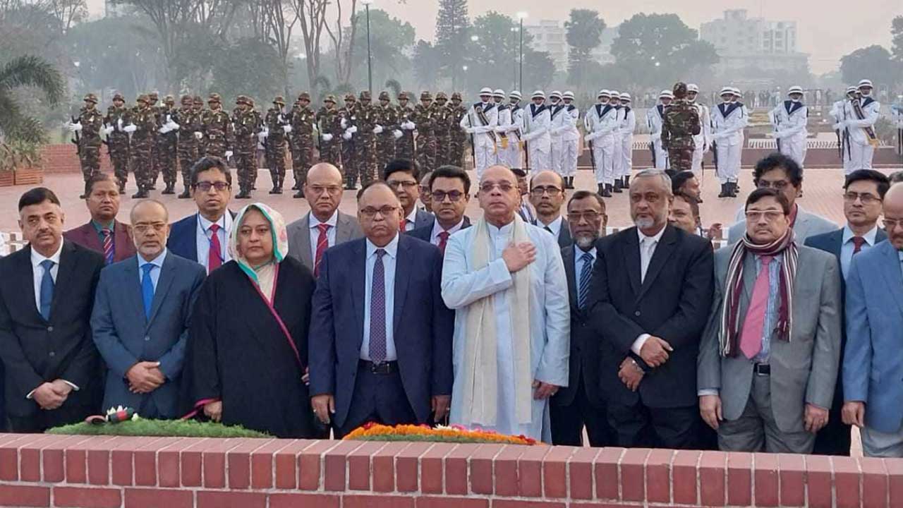 রাষ্ট্রপতি এবং প্রধান উপদেষ্টার পর প্রধান বিচারপতি ও সুপ্রিম কোর্টের উভয় বিভাগের বিচারপতিরা একযোগে পুষ্পার্ঘ্য অর্পণ করেন।