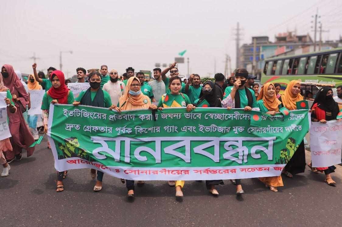 মানববন্ধনে বিডি ক্লিন সোনারগাঁ শাখার সমন্বয়ক কামরুজ্জামান রানা বলেন, কিছুদিন আগে একটি ইভেন্ট শেষে ফেরার পথে বিডি ক্লিন সদস্যরা ইভটিজিংয়ের শিকার হয়। এই ঘটনার প্রতিবাদ করায় অপর সদস্যদের ওপর হামলা চালানো হয়। এই ঘটনার তীব্র নিন্দা জানাই। ইভটিজার ও কিশোর গ্যাং নির্মূলে সামাজিকভাবে আন্দোলন গড়ে তুলতে হবে।’