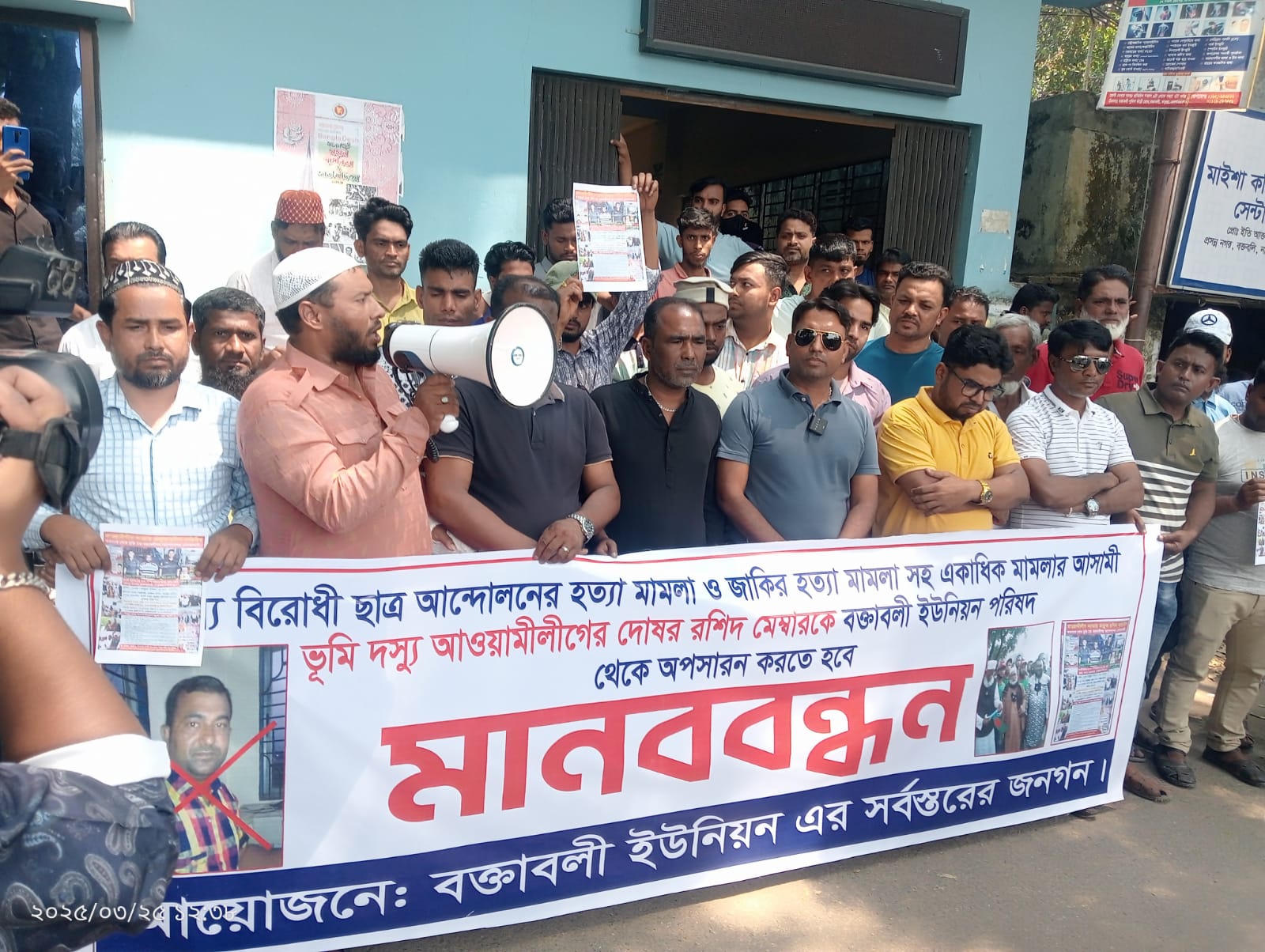সোমবার (২৫ মার্চ) দুপুরে বক্তাবলী ইউনিয়ন পরিষদের সামনে এলাকার সর্বস্তরের জনগণের ব্যানারে এ মানববন্ধন বের করে।