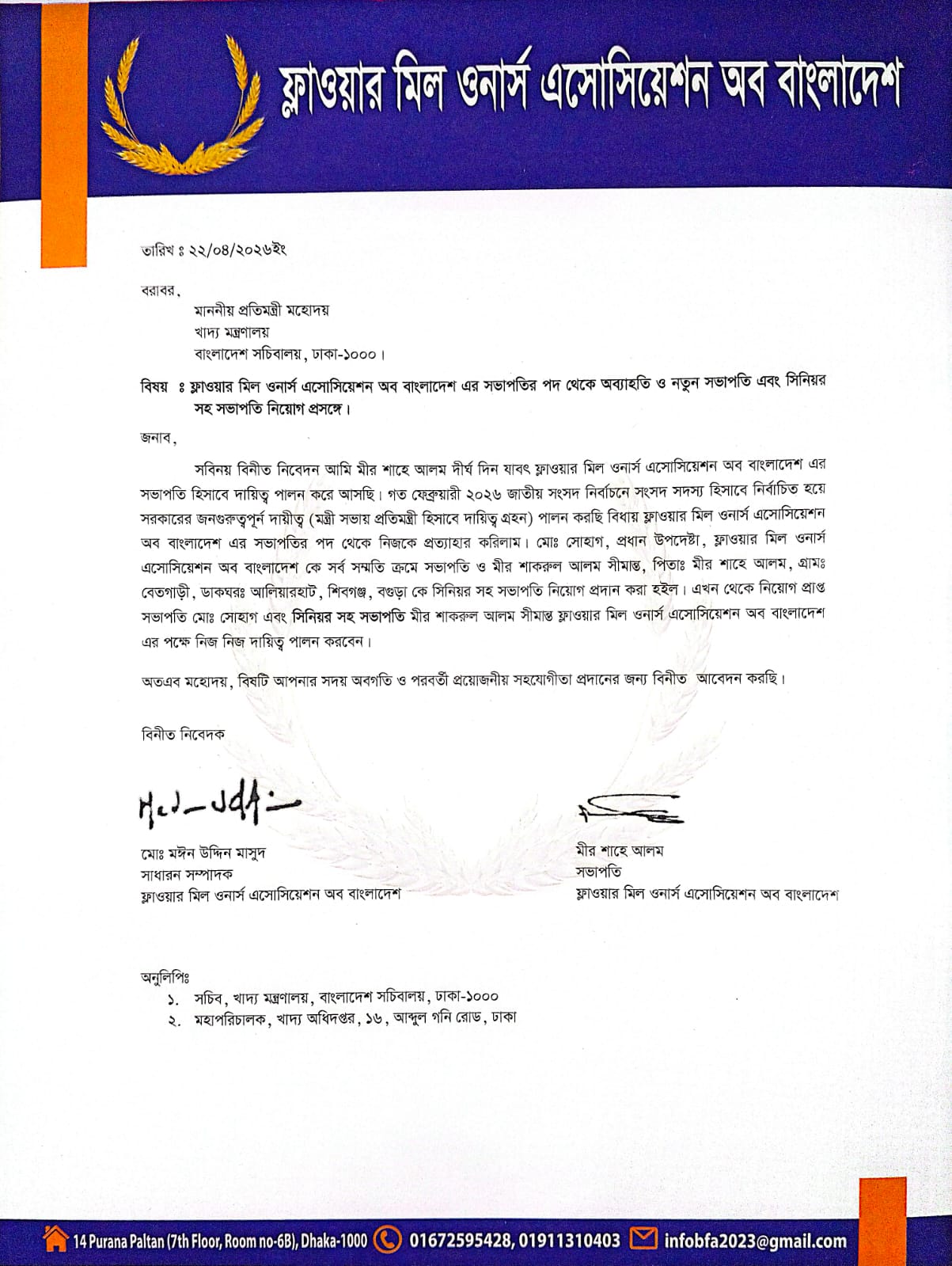 বাংলাদেশ ফ্লাওয়ার মিল ওনার্স অ্যাসোসিয়েশনের সভাপতি সোহাগ, সিনিয়র সহ-সভাপতি সীমান্ত