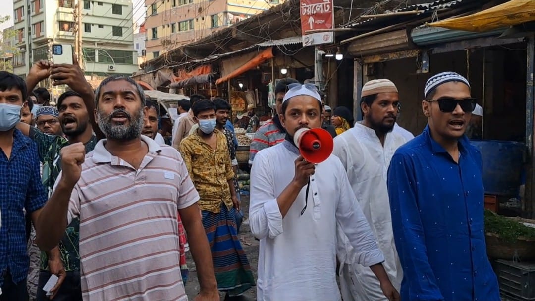 আজ বিকেলে নারায়ণগঞ্জ শহরের দিগু বাবুর বাজার এলাকায় এ বিক্ষোভ মিছিল বের করে বাজারের শ্রমিক ও দোকান মালিকরা।
